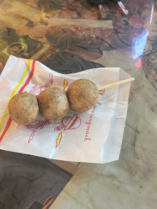 I ordered the taro balls from a little girl and her mom, and they were so delicious. Taro is a popular root vegetable in Asia. It reminds me of purple potatoes, it’s earthy but also sweet and nutty. They were very similar to the sweet potato balls I had in Kaohsiung, though I did prefer taro slightly. There were many other food stalls, a lot of which were serving up bubble tea, ice creams, and seafood. Though I don’t eat meet, I will sometimes eat seafood in coastal areas (mussels are my fav!) but I can’t bring myself to eat anything that still has its eyes attached, so no shrimp for me.